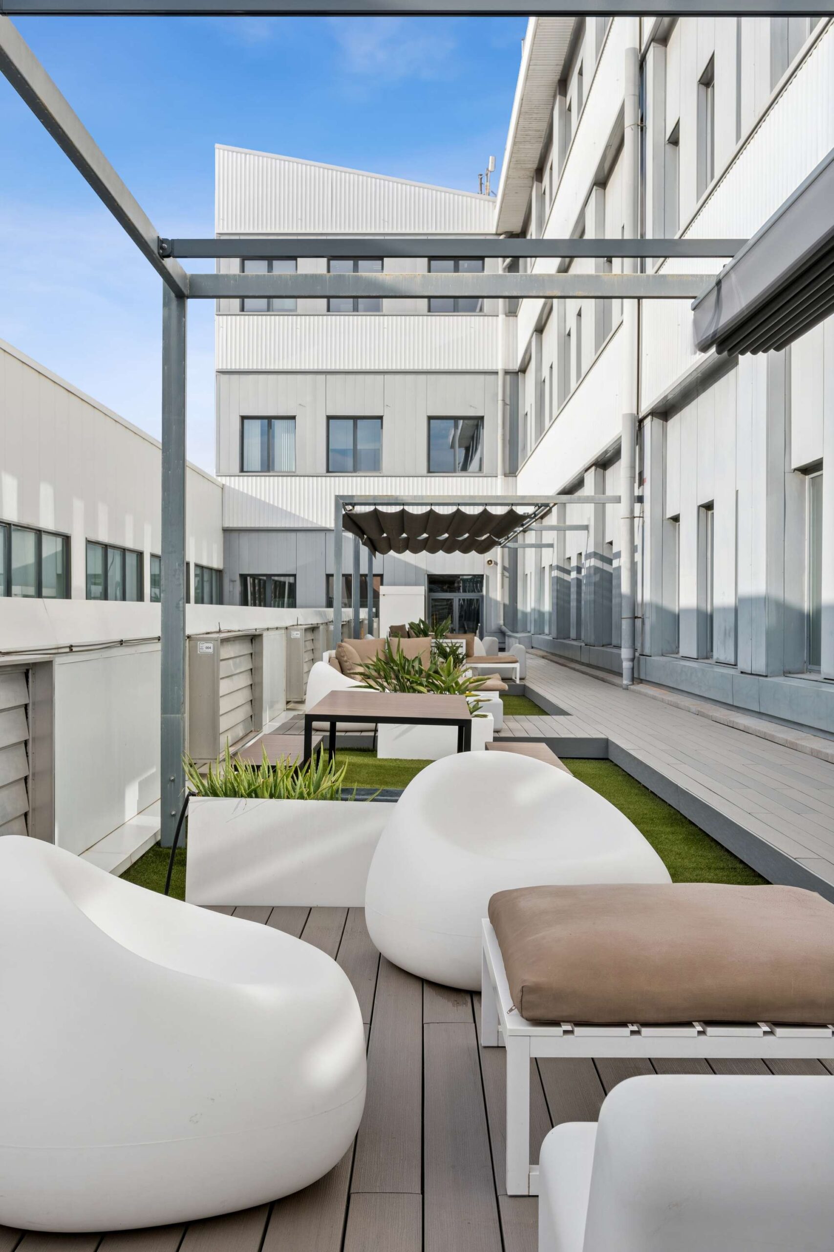 Terraza común equipada para usuarios y cantina
